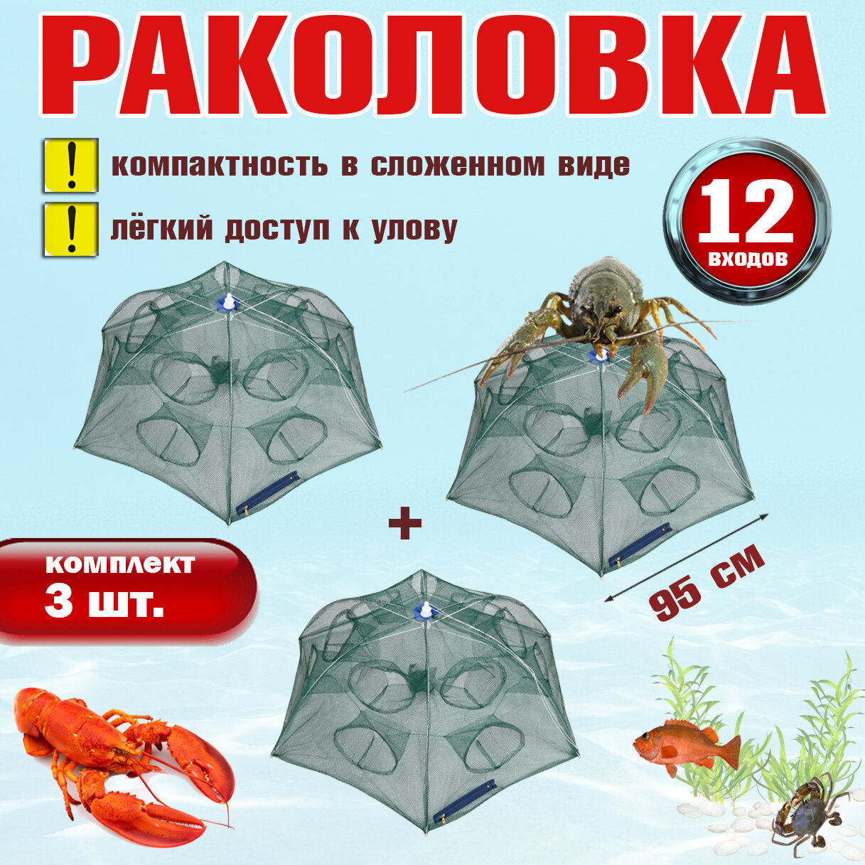 Раколовка для раков зонт 6 входов рыбацкая, комплект 3 шт. интересное: