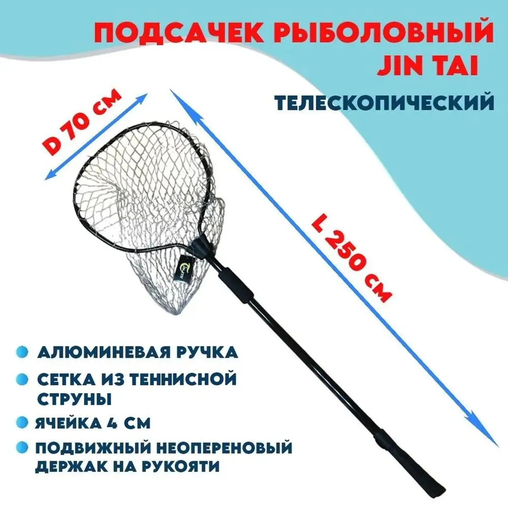 Подсачек телескопический черный Jin Tai D-70см L -250см (тен.струна, яч4см) с неопреновым держаком на рукояти интересное: