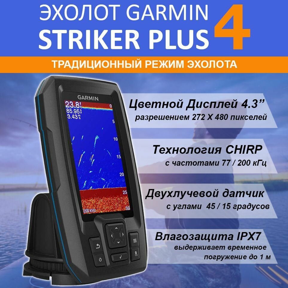 Эхолот Garmin STRIKER Plus 4 комплект со струбциной и датчиком 77/200 интересное: