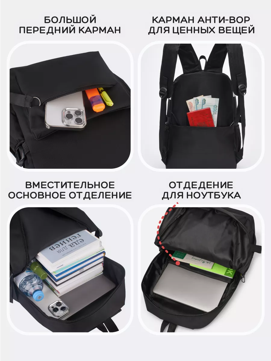 Рюкзак черный мужской, женский, школьный, спортивный, повседневный, городской, для путешествий и тренировок