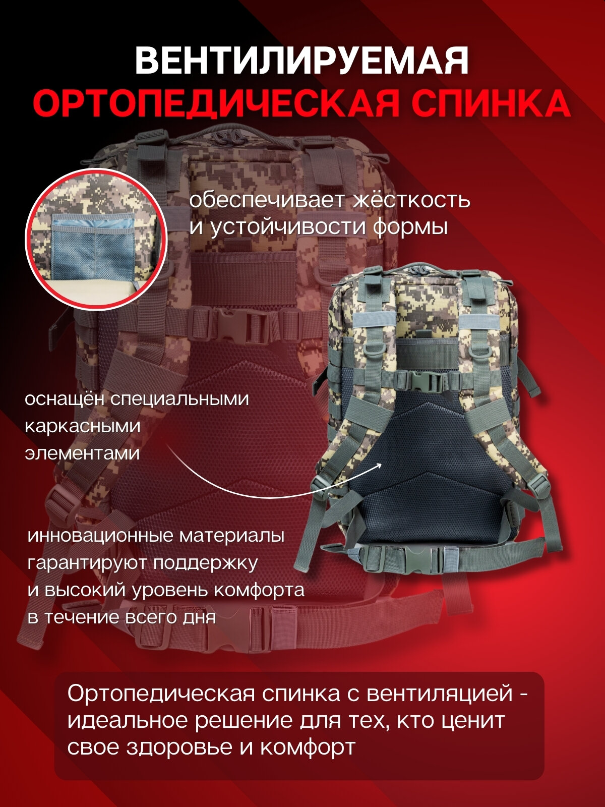 | Конструктивные особенности | вентилируемые лямки / вентиляция спины / поясной ремень / эргономичные лямки |