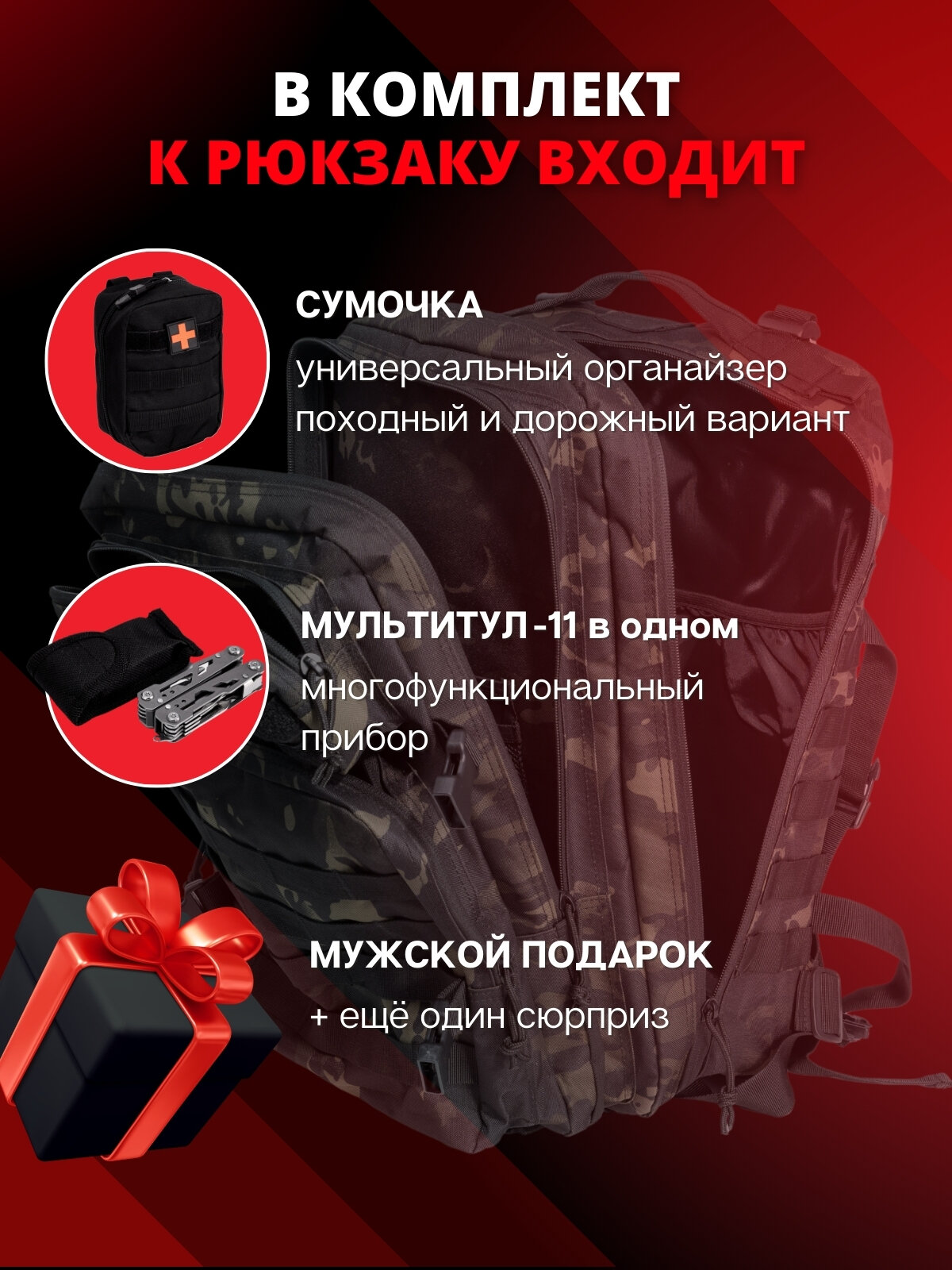 Ниже Вы можете прочитать отзывы на Рюкзак тактический, Туристический, 50 литров, Черный хаки, Мультитул/сумка-аптечка + подарок внутри., ознакомится с подробными характеристиками, посмотреть интересные обзоры и фотографии на Рюкзак тактический, Туристический, 50 литров, Черный хаки, Мультитул/сумка-аптечка + подарок внутри..