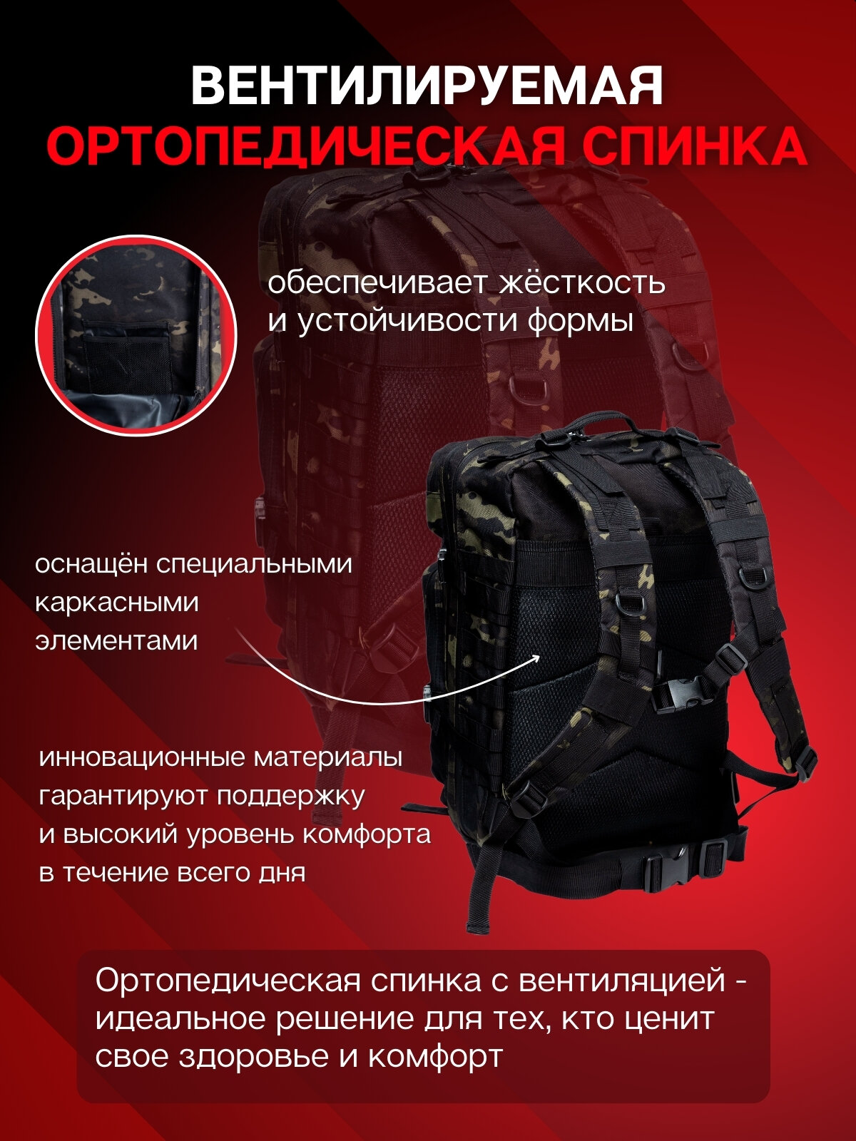 | Конструктивные особенности | вентилируемые лямки / вентиляция спины / поясной ремень / эргономичные лямки |