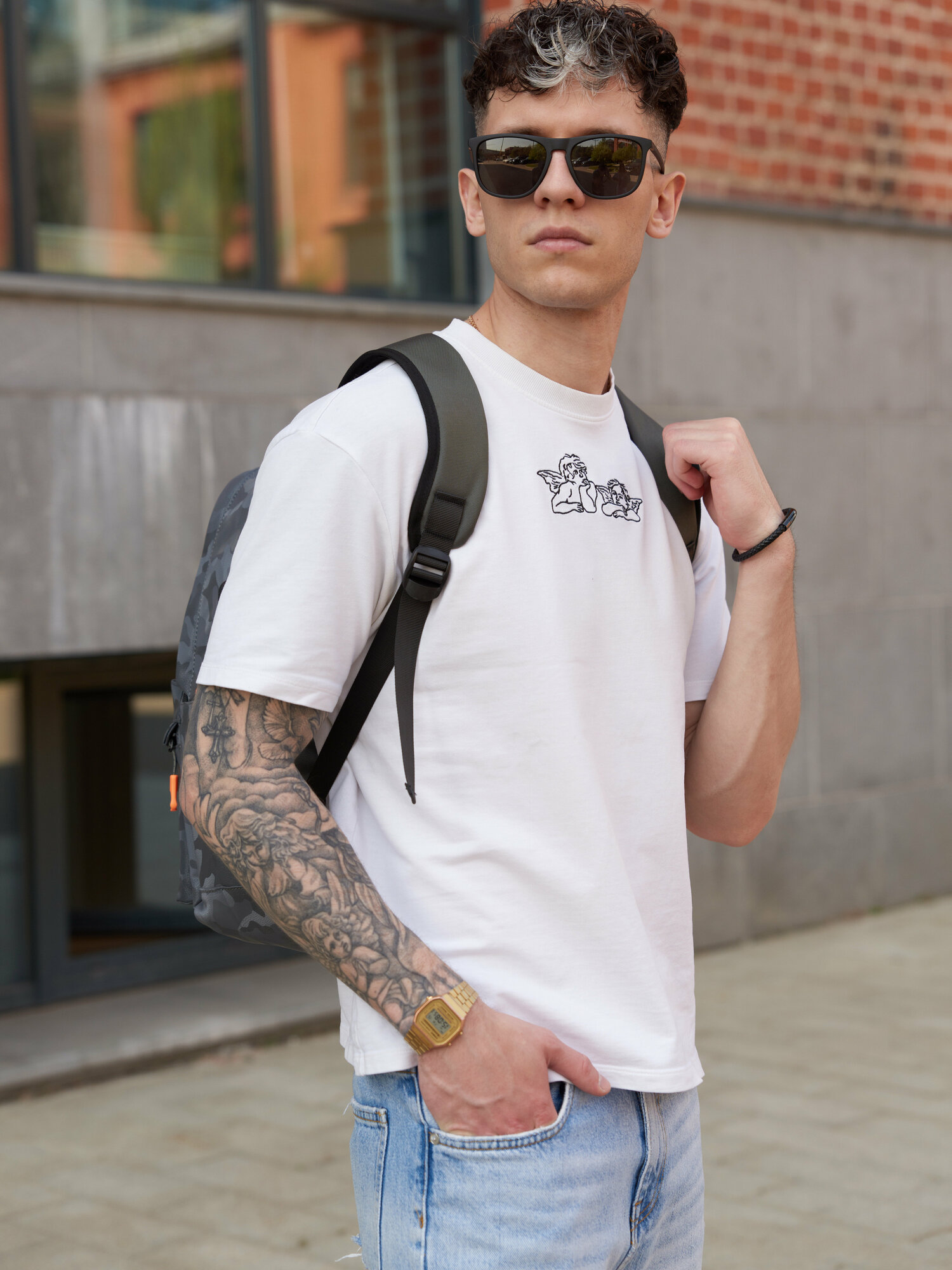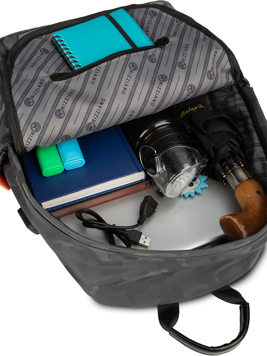 Рюкзак мужской городской спортивный школьный туристический Rizziano, черный камуфляж