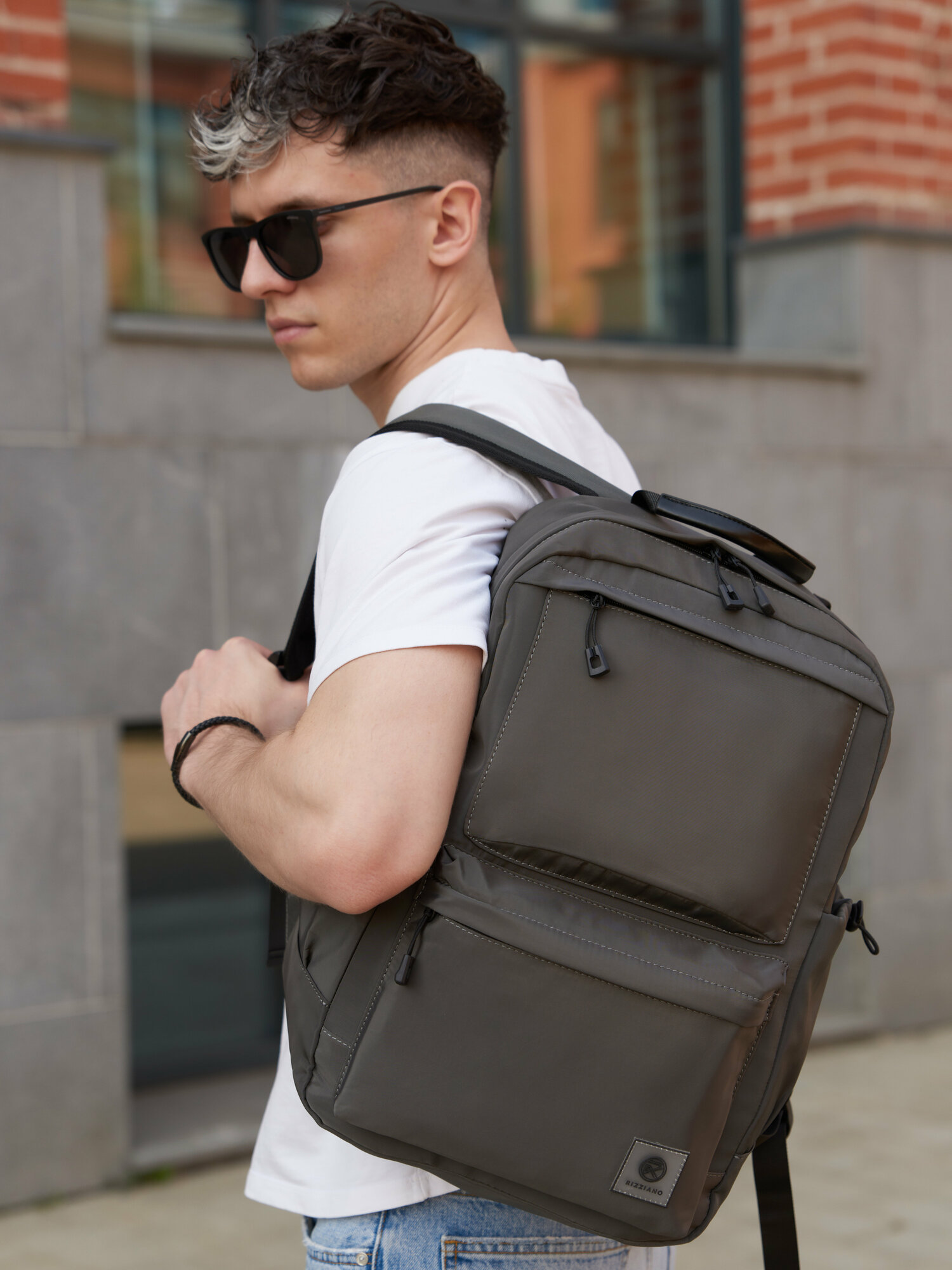 Рюкзак мужской городской спортивный школьный туристический Rizziano, серый асфальт