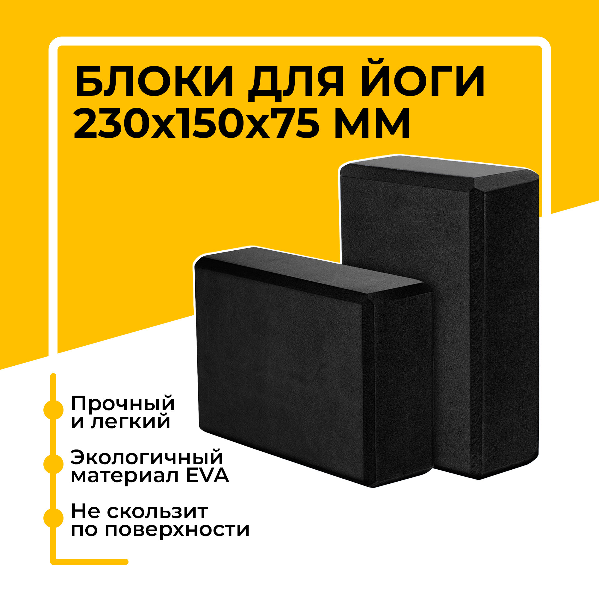 Купить Блок (кирпич) для йоги EVA, 230х150х75 мм, черный, набор из 2 шт