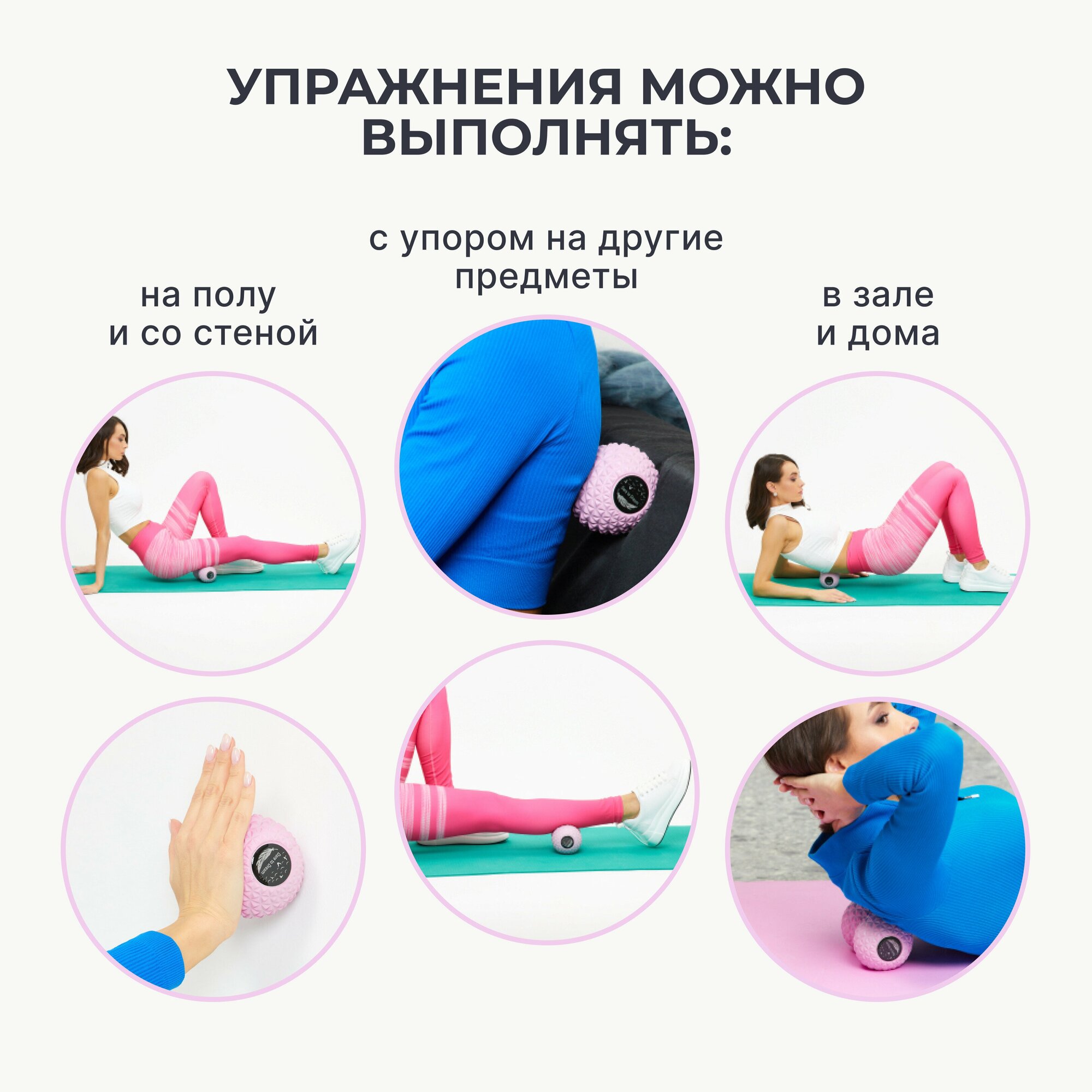 Мячик массажный двойной для йоги, пилатеса и МФР, розовый, ролик массажный, мяч для МФР, валик для спины интересное: