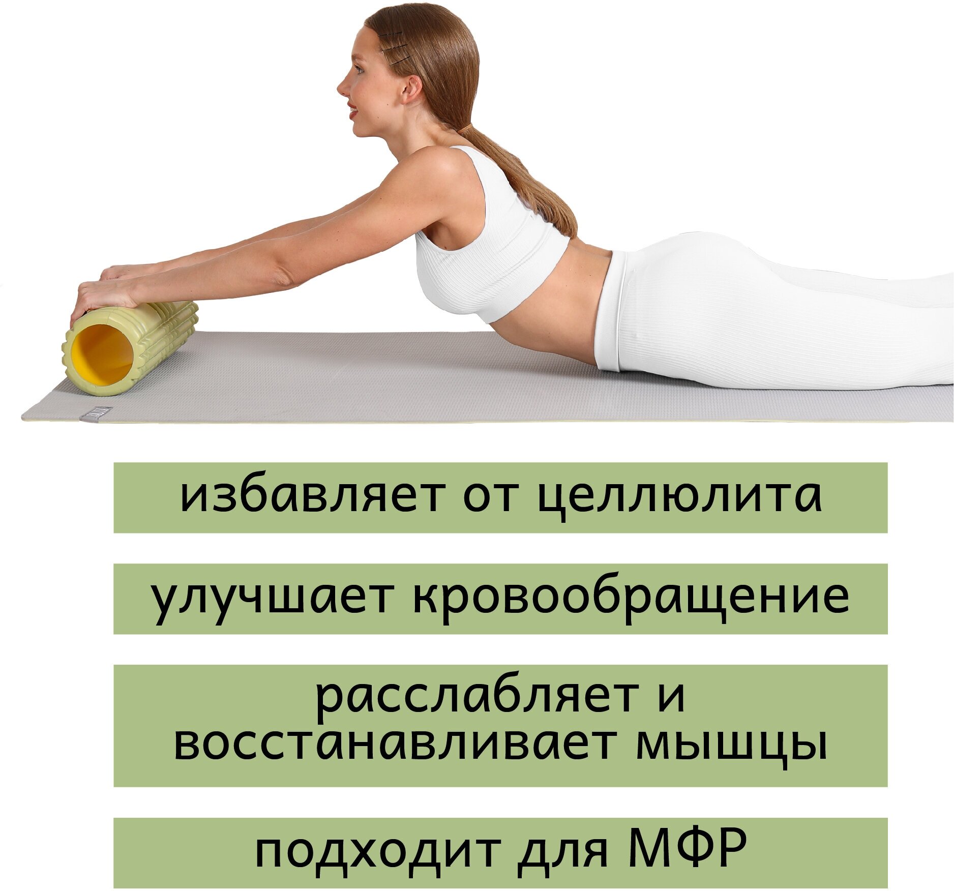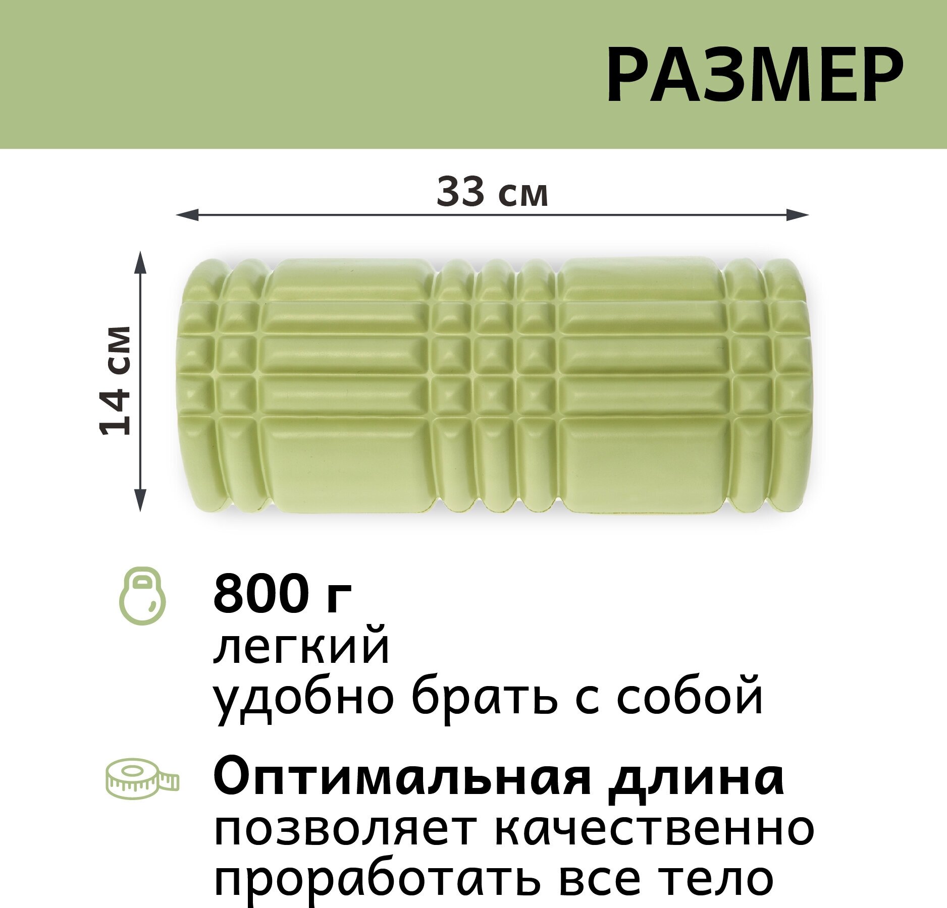 СохранитьРолик массажный для фитнеса ATLAS, EVA+PVC, 33х14 см, оливково-желтый, МФР массажный валик для спины, ролл для йоги и пилатеса интересное: