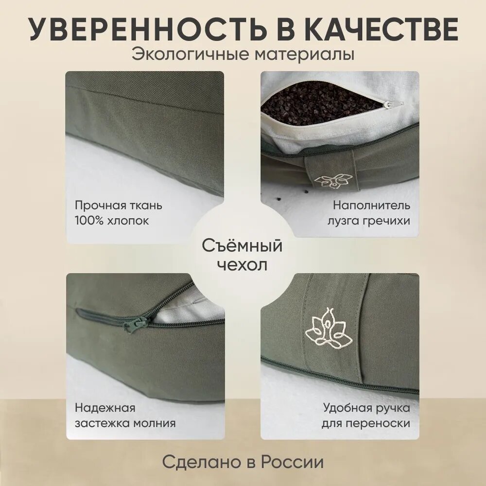 Подушка для йоги и медитации с гречневой лузгой Арт Йогаматик, хаки интересное: