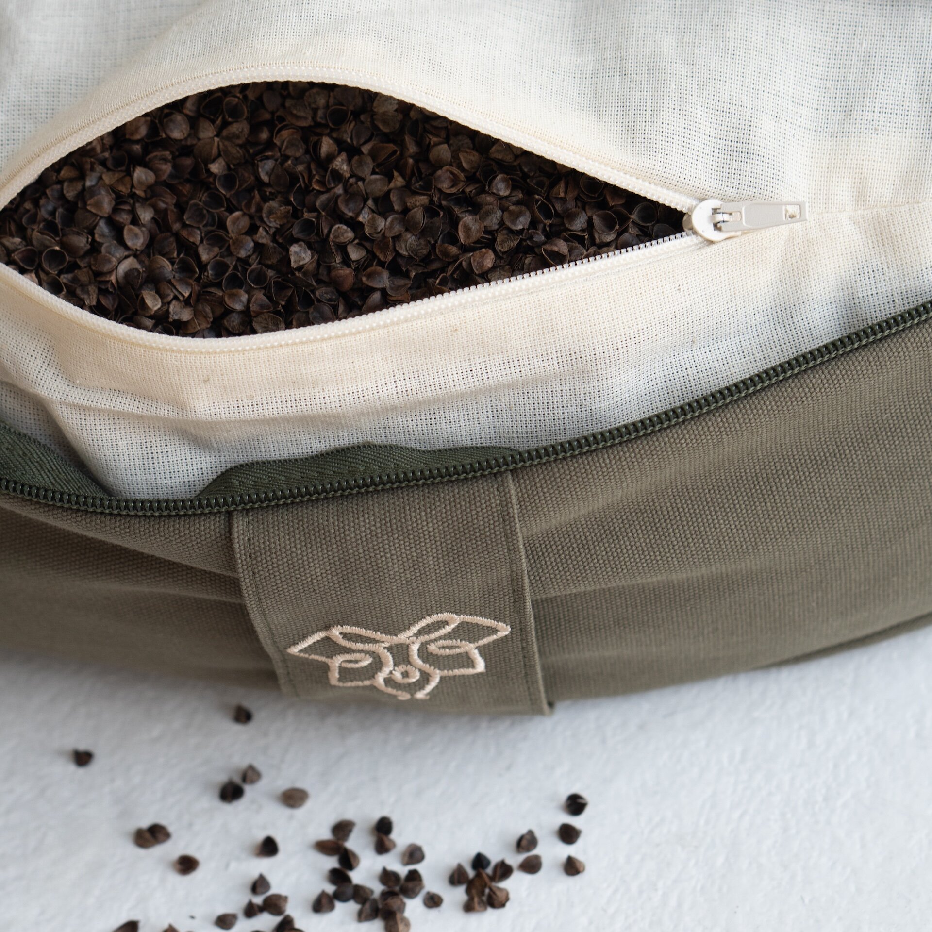 Купить Подушка для йоги и медитации с гречневой лузгой Арт Йогаматик, хаки