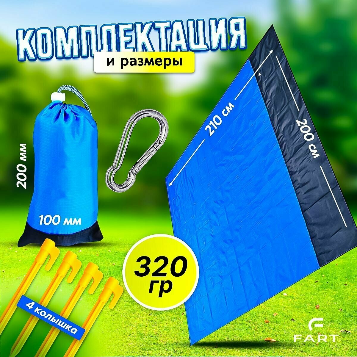 Компактный Пляжный коврик, Туристический коврик, 200х210 см, зеленый, лёгкий, складной, водонепроницаемый