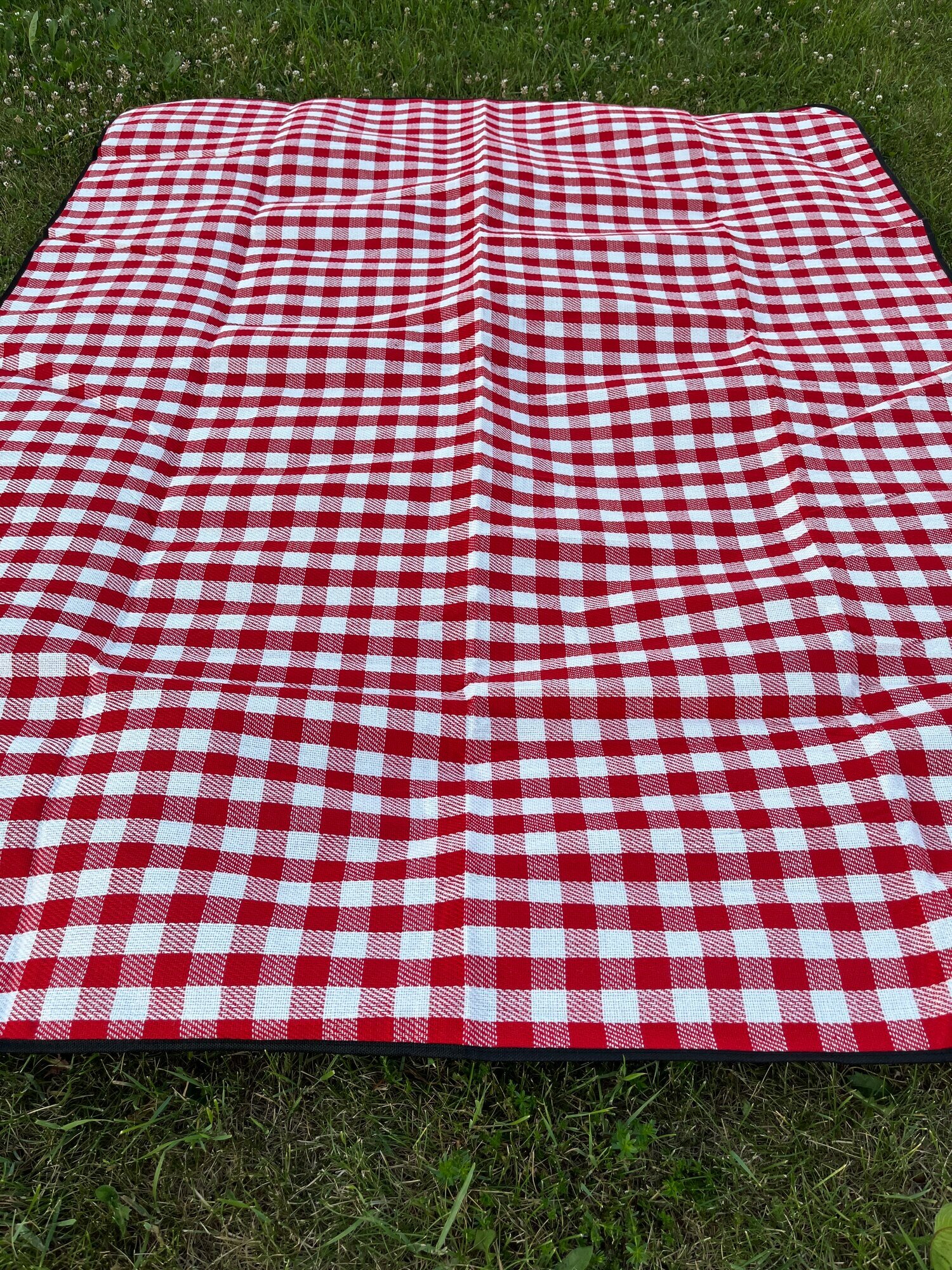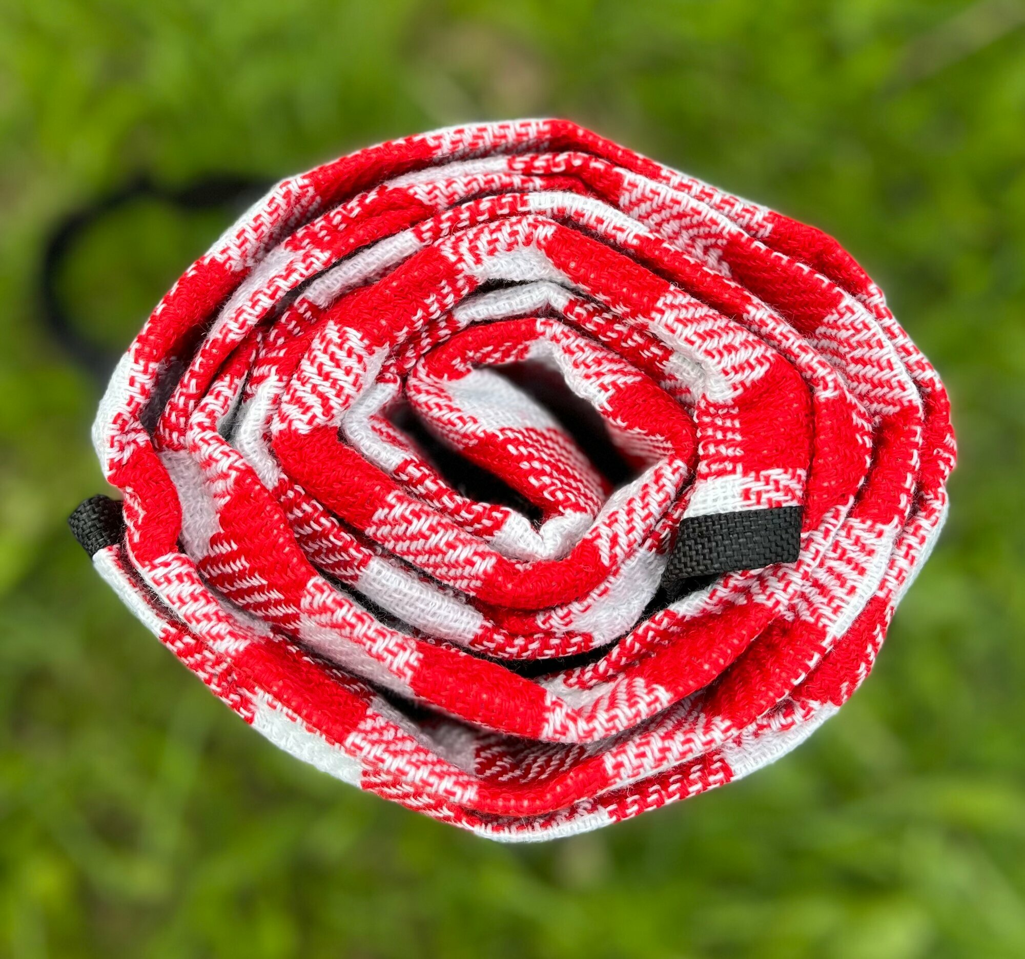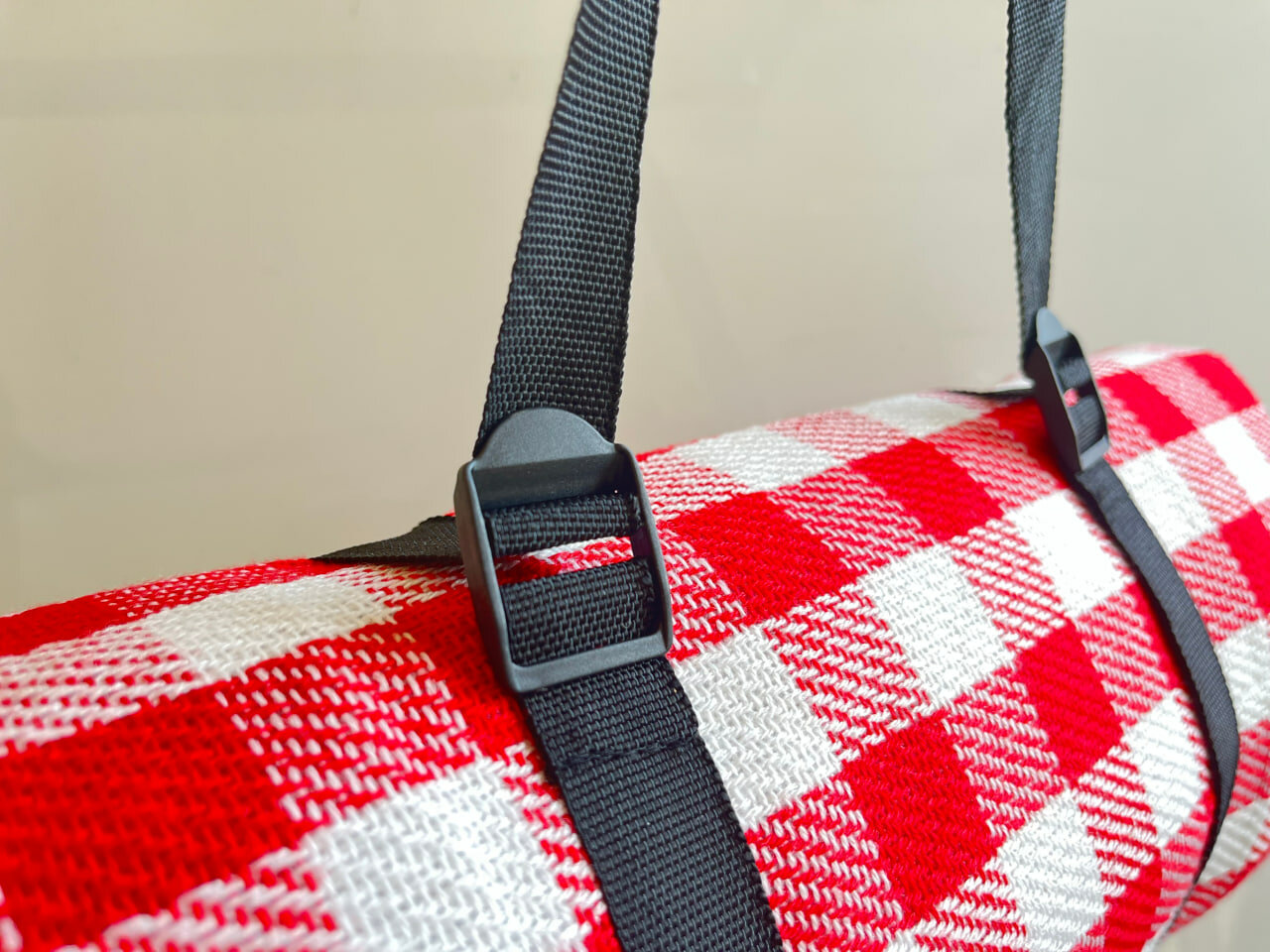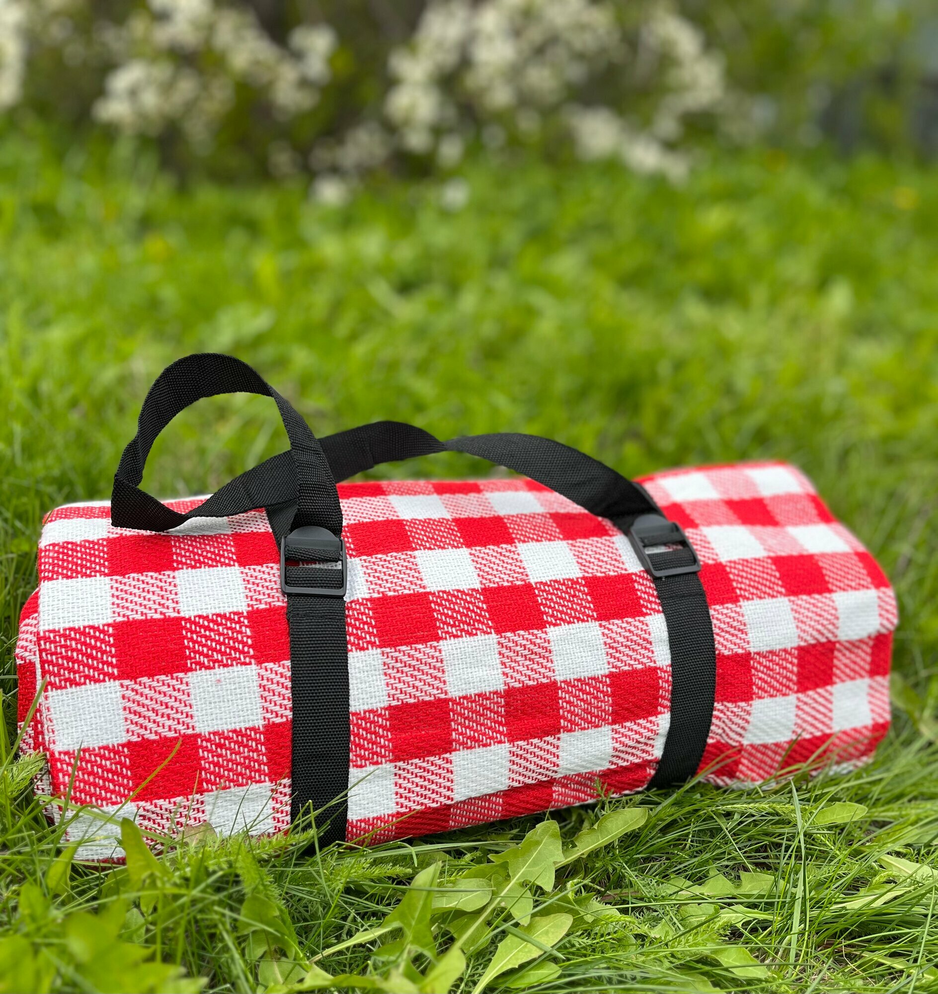 Плед для пикника 150*200 см с длинными ремешками Черная клетка