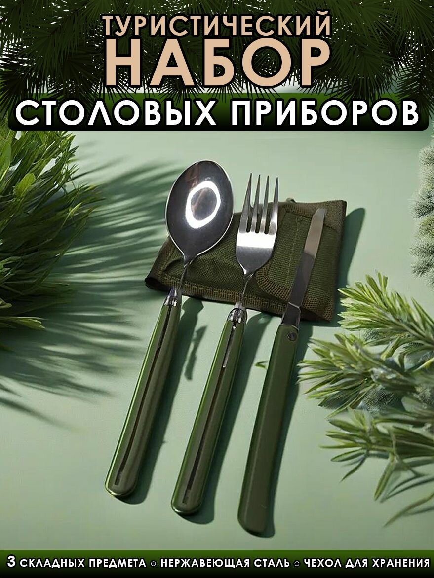 Туристический набор столовых приборов складной, в чехле, хаки интересное: