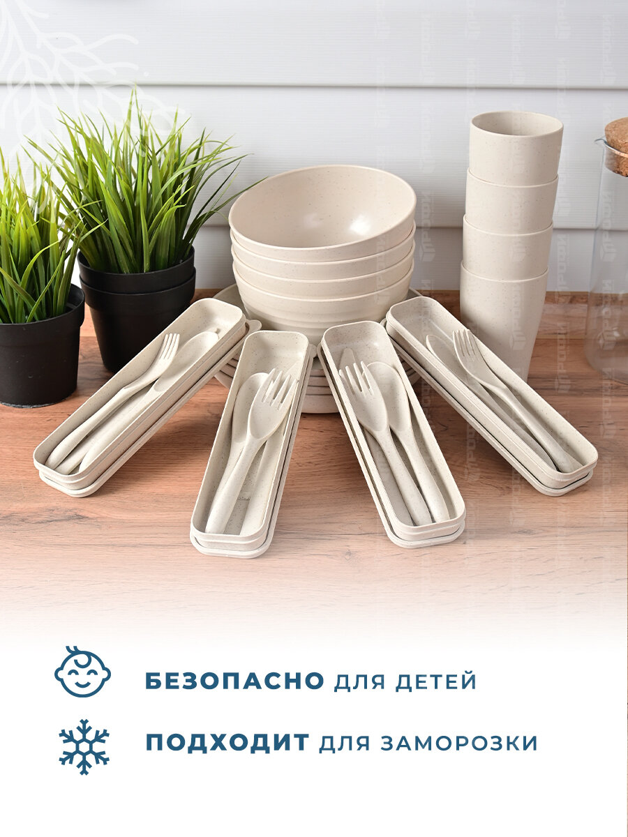 Купить Биоразлагаемая посуда на 4 персоны, Многоразовая экопосуда, Набор посуды из пшеничной соломы