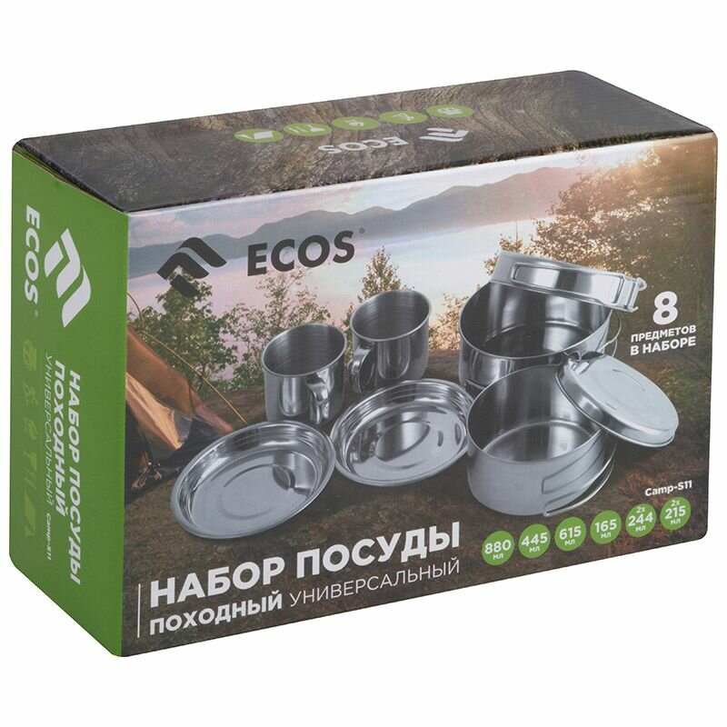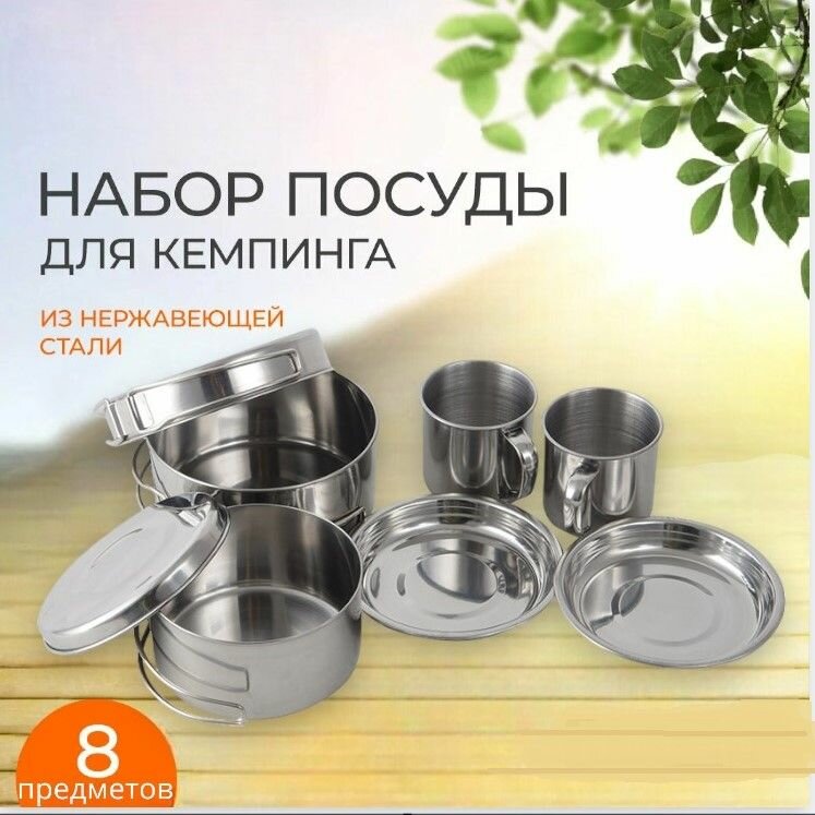 Купить Набор посуды походный Camp-S11 из нержавеющей стали (8 предметов)