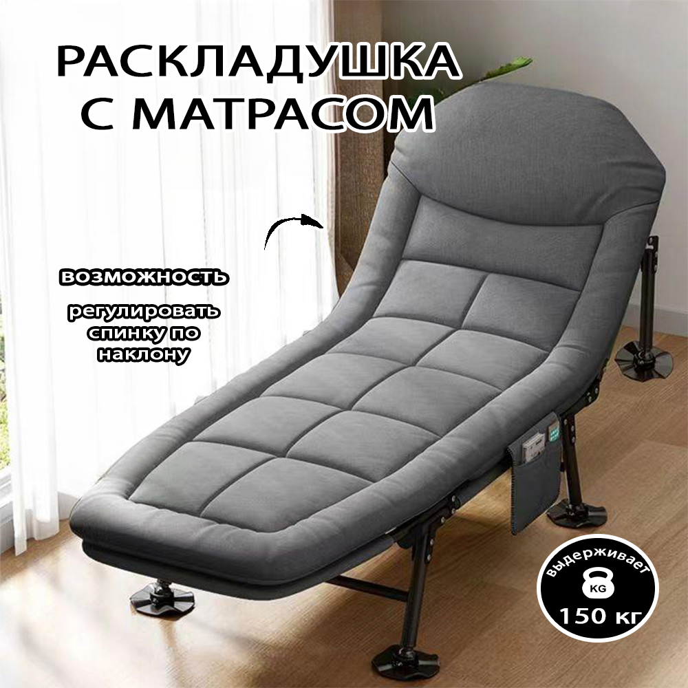 Кровать раскладушка с матрасом взрослая туристическая для кемпинг для зимней рыбалки 200*65*34cm садовой шезлонг для дачи и отдыха на природе интересное: