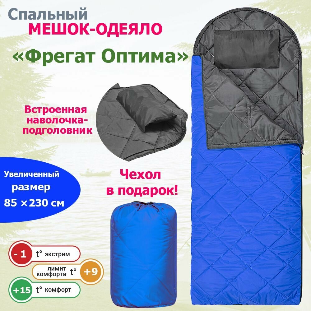 Спальный мешок-одеяло с ультразвуковой стежкой и подголовником Фрегат (300). синий, Спальник туристический 85 х 230 см