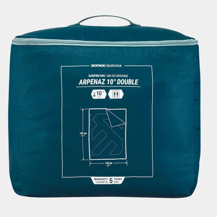 Купить Мешок спальный для кемпинга 2-местный ARPENAZ 10° DOUBLE QUECHUA Х Decathlon Бирюзовый единый