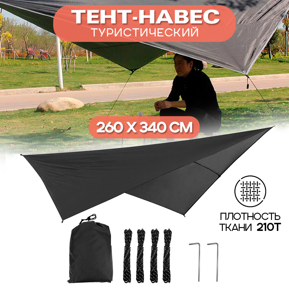 Тент туристический, садовый, походный, укрывной 340 х 260 см, цвет - черный