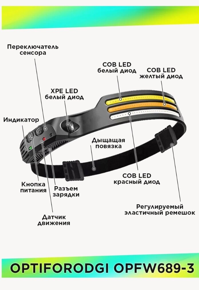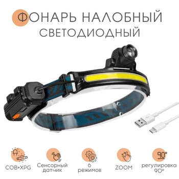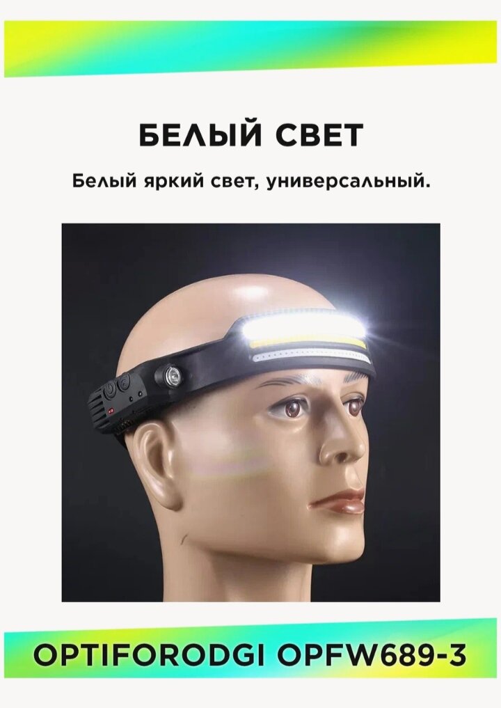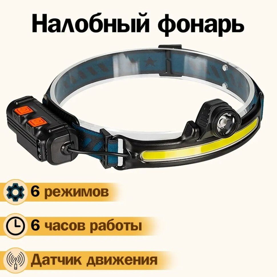 Фонарик налобный аккумуляторный светодиодный с гибкой COB панелью и датчиком движения UBG (W689-3) интересное: