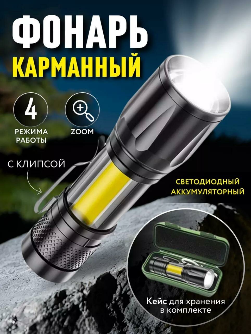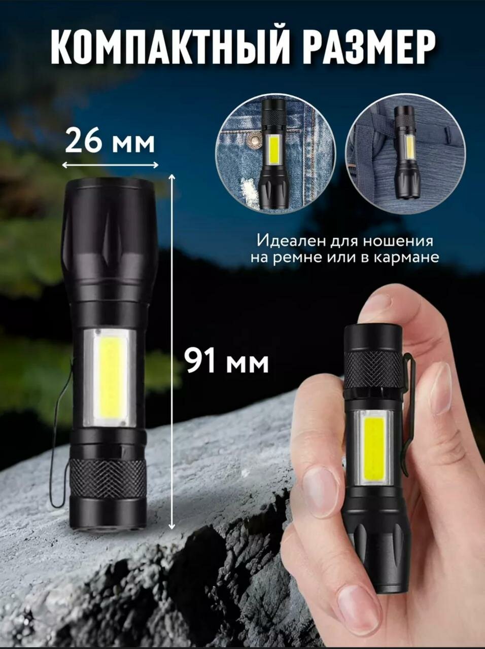 Купить Фонарь ручной светодиодный с фокусировкой, компактный с креплением и сверхъяркий