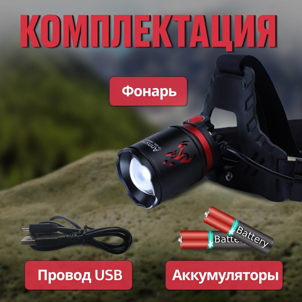 | Дополнительная информация | В комплектации фонаря присутствуют аккумуляторы стандарта 18650. Для длительного использования фонаря рекомендуется отдельно приобретать аккумуляторы стандарта 18650 известных брендов. На хороших аккумуляторах производитель выше 3500 мАч ёмкость не пишет!!! При покупке фонарей сразу же нужно иметь ввиду, что если вы планируете их длительное использование (например на ночной рыбалке, охоте и т.д.), то вам обязательно понадобится комплект хороших и качественных аккумуляторов; тип батарей: ICR18650; время зарядки аккумулятора: 3 ч; подробная комплектация: - Фонарь налобный - Кабель для зарядки USB - Type-C - Коробка.; количество батарей: 3; количество режимов работы: 3; потребление питания: micro-USB |