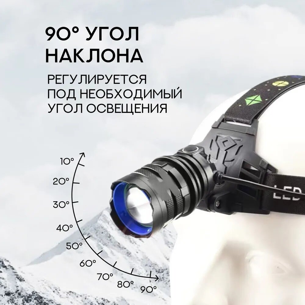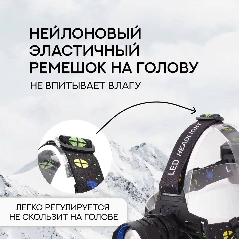 Фонарь налобный аккумуляторный светодиодный с Zoom фокусировкой и 3 режимами работы, SimpleShop
