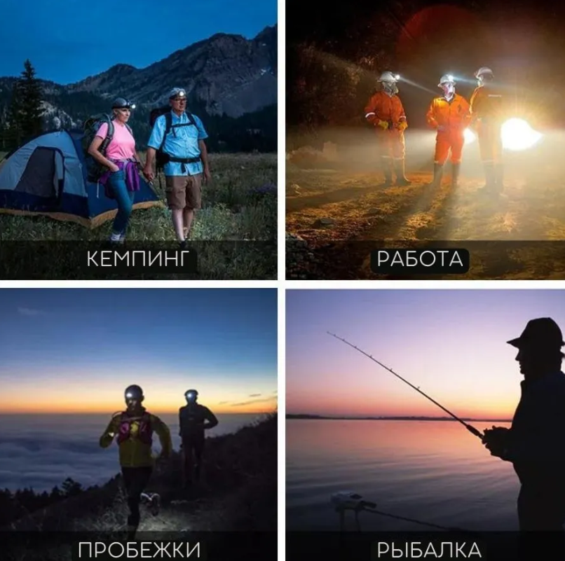Фонарь налобный аккумуляторный светодиодный для кемпинга с датчиком движения/ Туристический кемпинговый походный фонарик для охоты и рыбалки/5 режимов