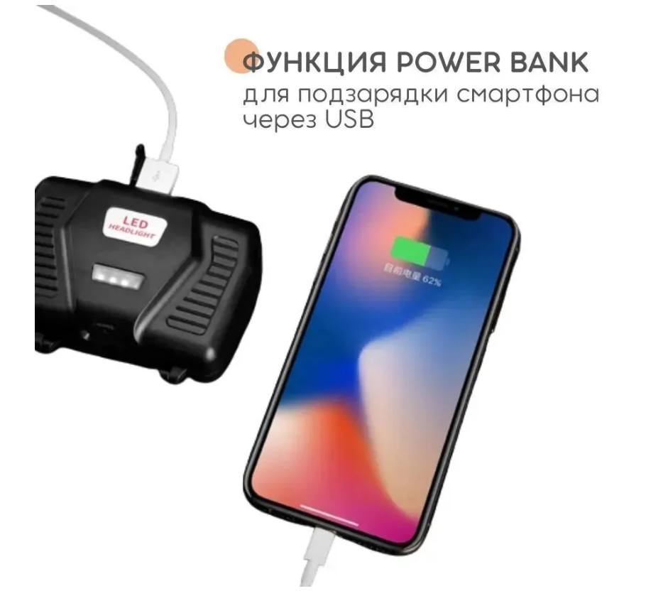 Фонарик налобный с Power Bank