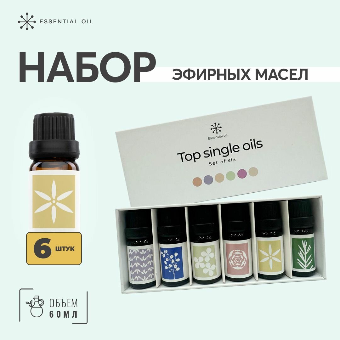 Набор Эфирных масел Essential Oil для ароматерапии / Водорастворимое Эфирное масло из 6 ароматов для арома ламп/ Ароматическое масло для медитаций
