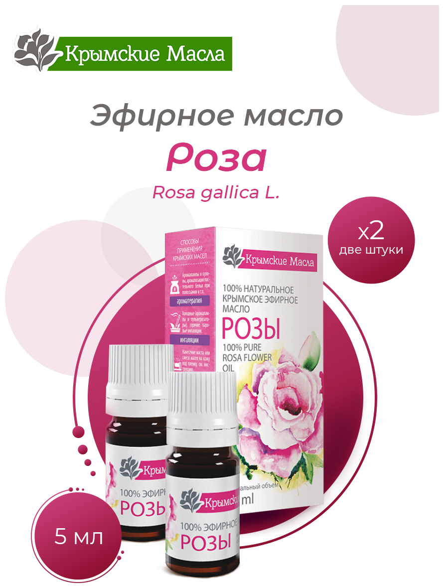 Комплект из 2 шт. Эфирное масло Крымские масла Роза, 5 мл Кап. Дозатор