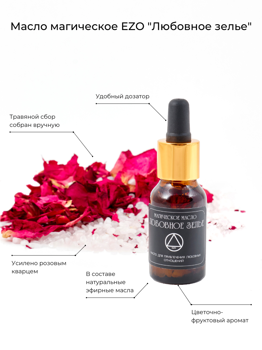 Ниже Вы можете прочитать отзывы на Масло магическое Любовное зелье с кварцем и травами 15 мл., ознакомится с подробными характеристиками, посмотреть интересные обзоры и фотографии на Масло магическое Любовное зелье с кварцем и травами 15 мл..