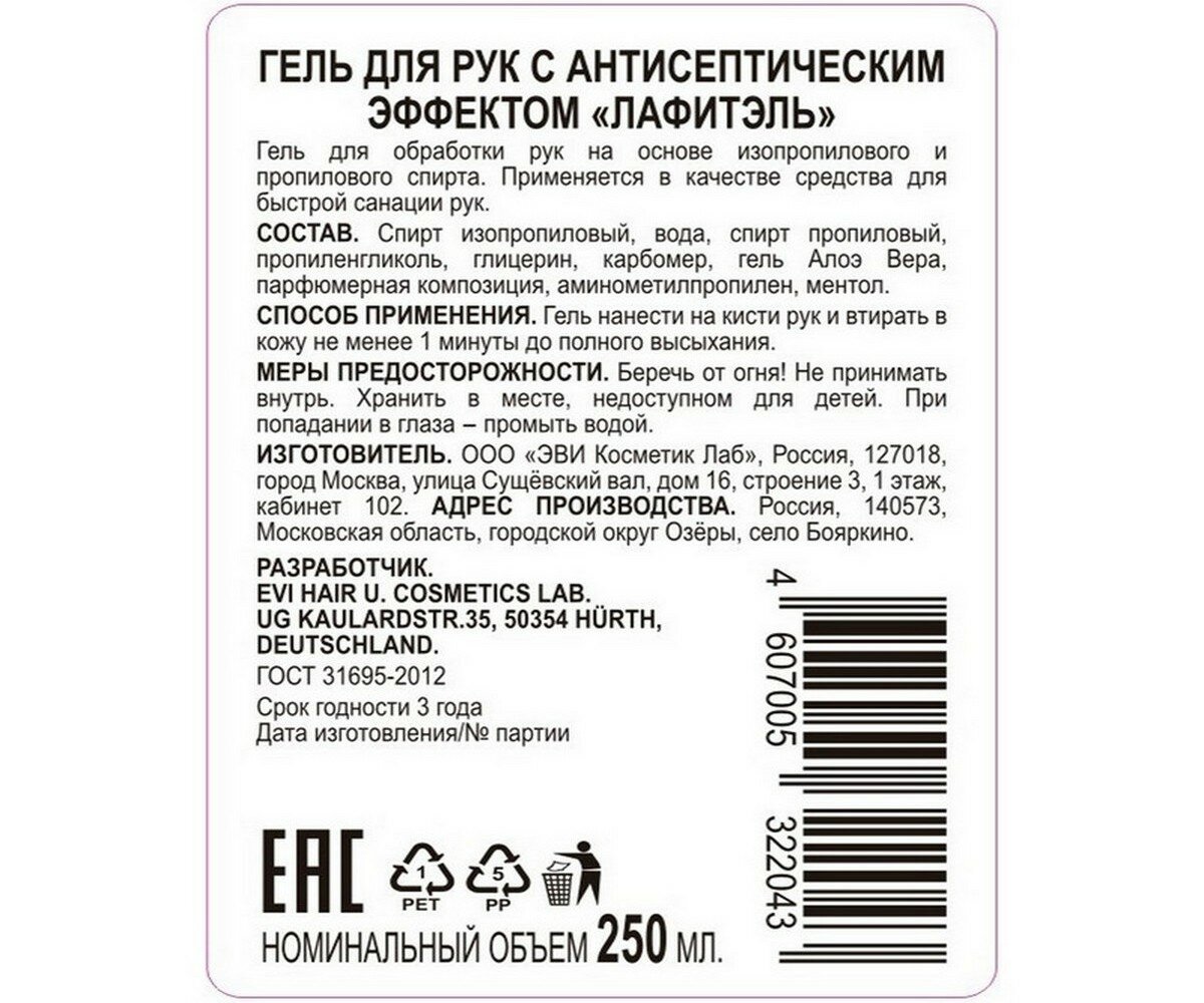 Ниже Вы можете прочитать отзывы на Антисептик для рук Lafitel, гель, 250 мл, ознакомится с подробными характеристиками, посмотреть интересные обзоры и фотографии на Антисептик для рук Lafitel, гель, 250 мл.