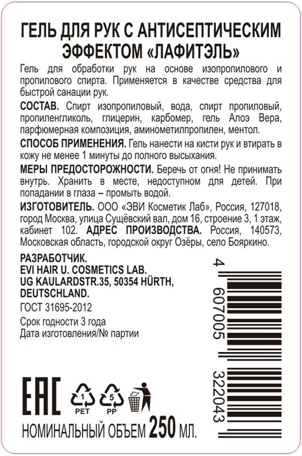 | Изготовитель | Эви Косметик Лаб |