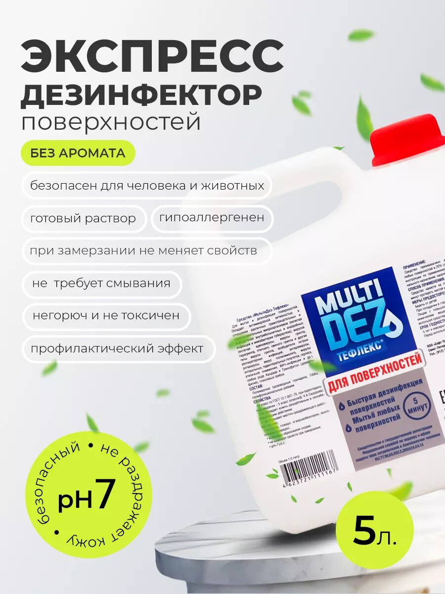 МультиДез, Тефлекс для дезинфекции и мытья поверхностей (пробка), 5 л интересное: