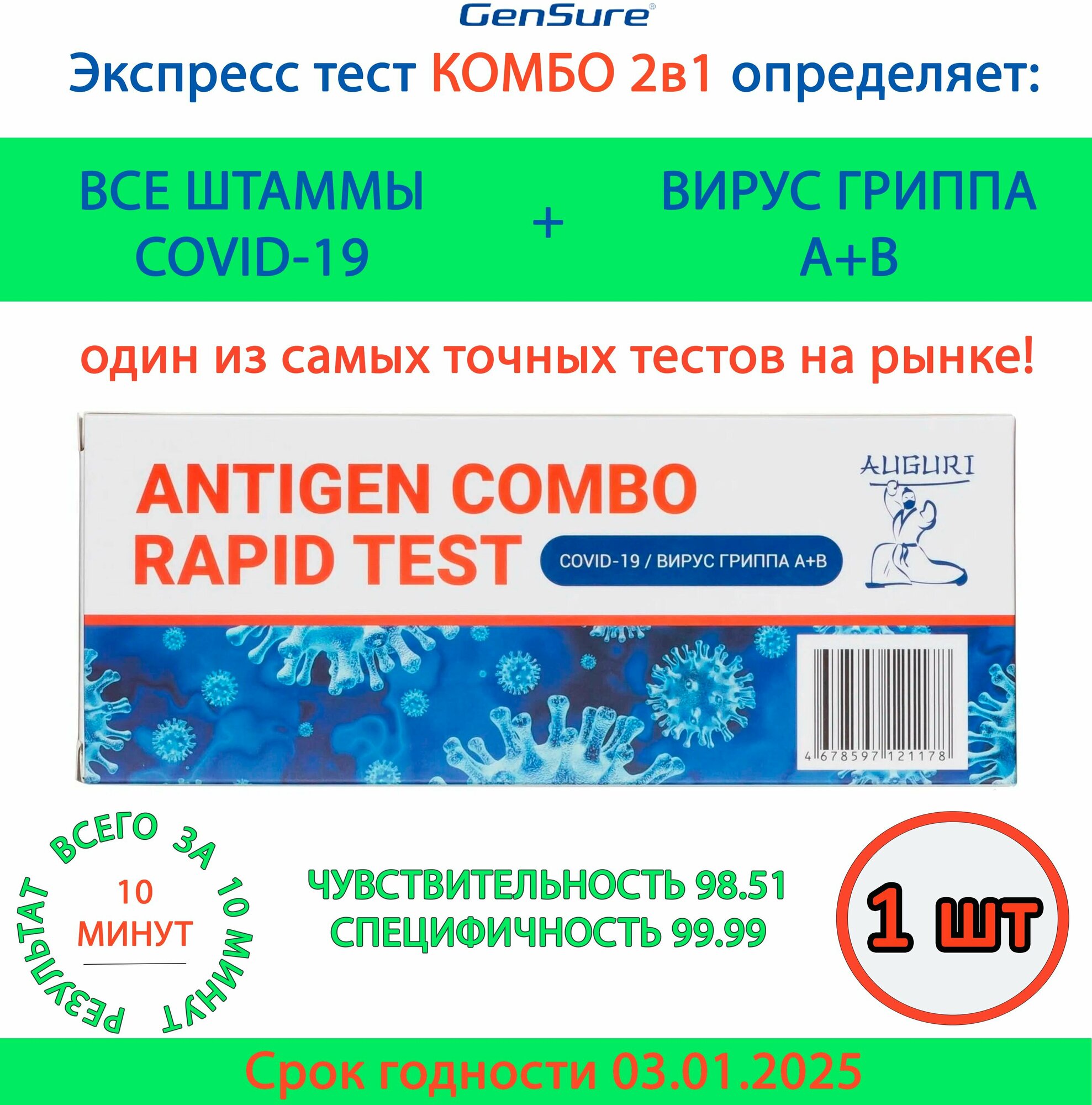 Экспресс тест Комбо на ковид-19/Вирус Гриппа А+В, на выявление антигена коронавируса Covid-19/Вирус Гриппа А+В , ANTIGEN COMBO RAPID TEST GenSure 1 шт интересное: