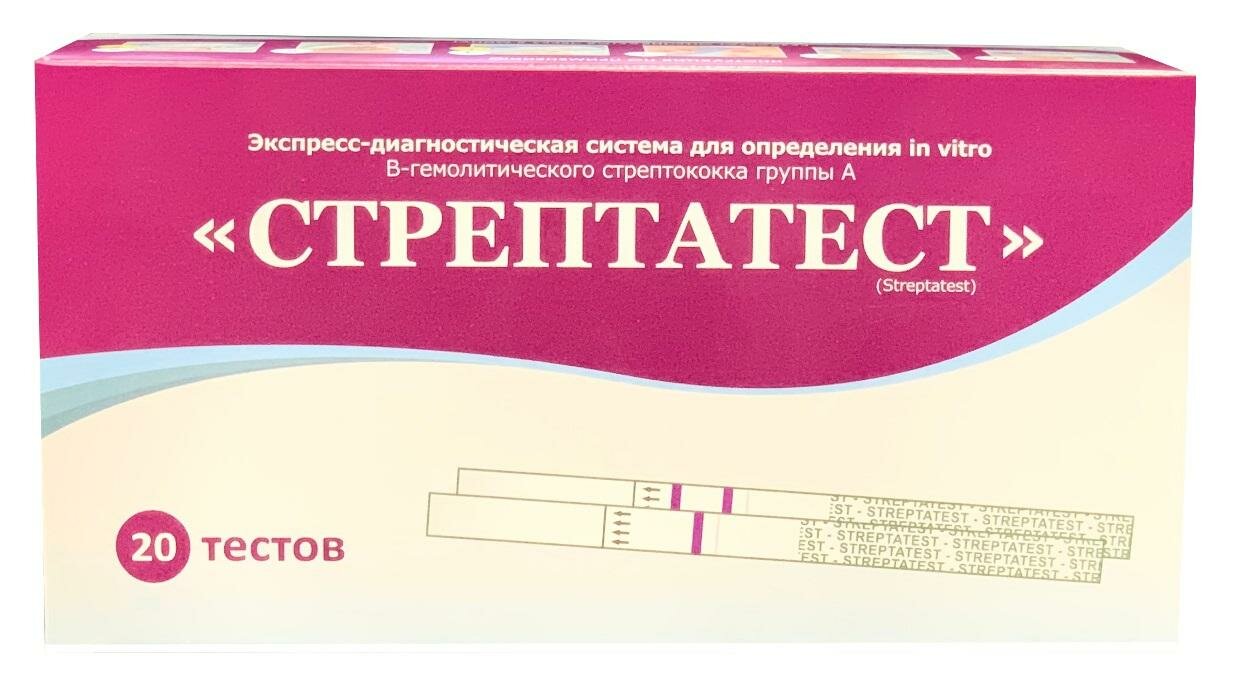 Стрептатест Экспресс-тест на В-гемолитический стрептококк А, 20 штук в упаковке