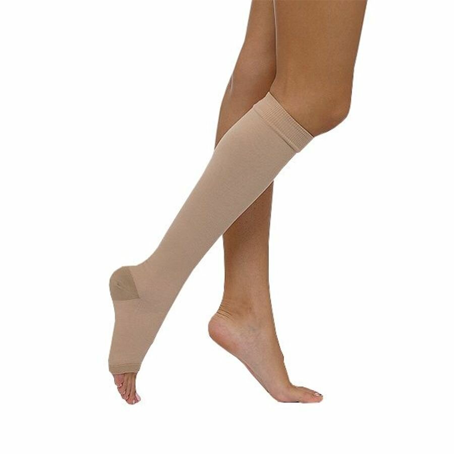 Чулки компрессионные до колена с открытым мыском, 1 класс компрессии, кремовые, Размер 2