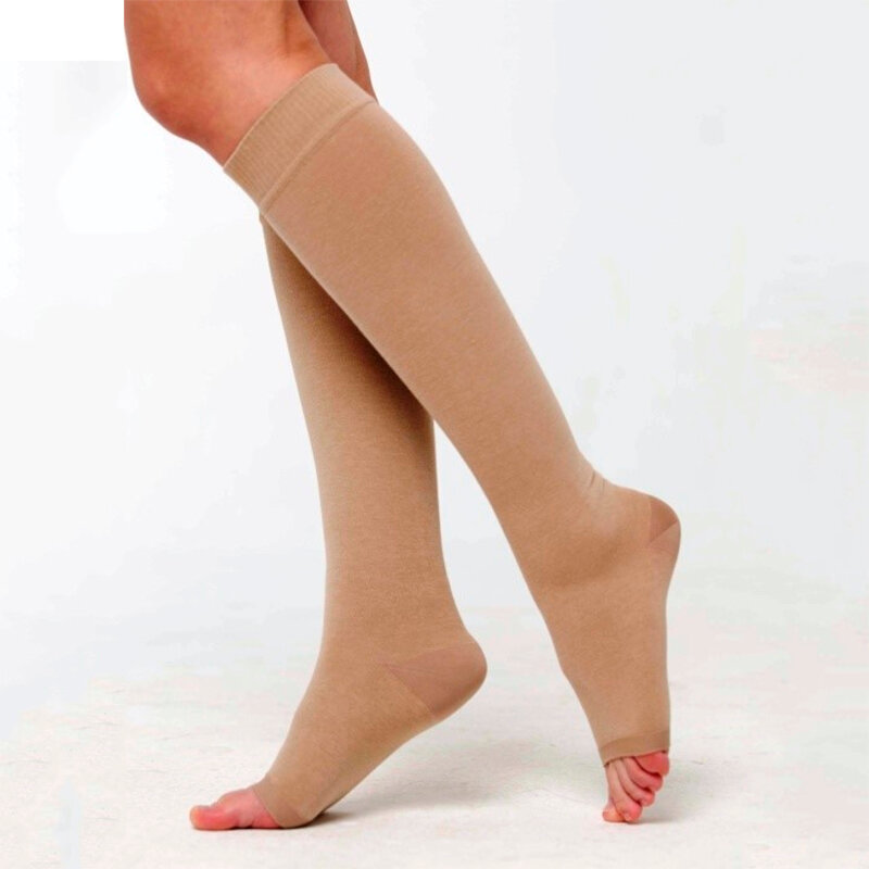 Чулки компрессионные до колена с открытым мыском, 1 класс компрессии, кремовые, Размер 2