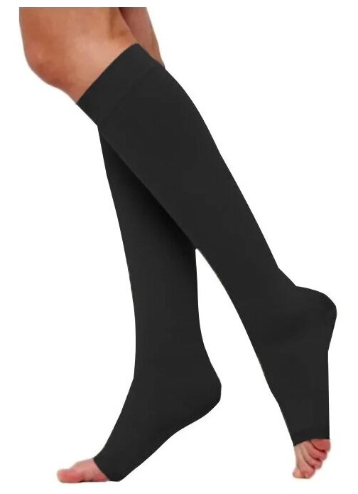 Чулки компрессионные до колена с открытым мыском, 1 класс компрессии, черные, Размер 4