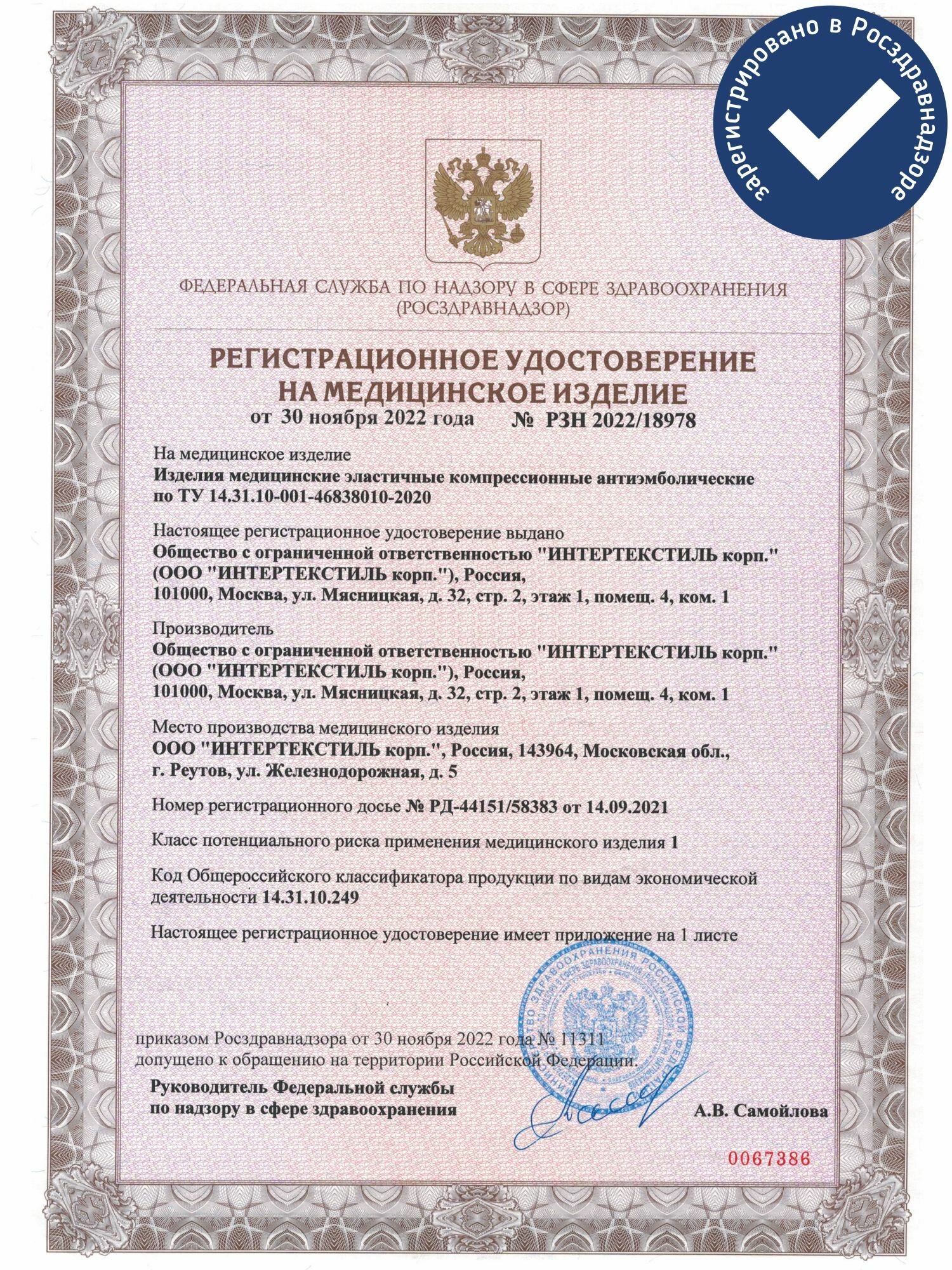 | Класс компрессии | первый (18.00 - 21.00 мм.рт.ст.) |