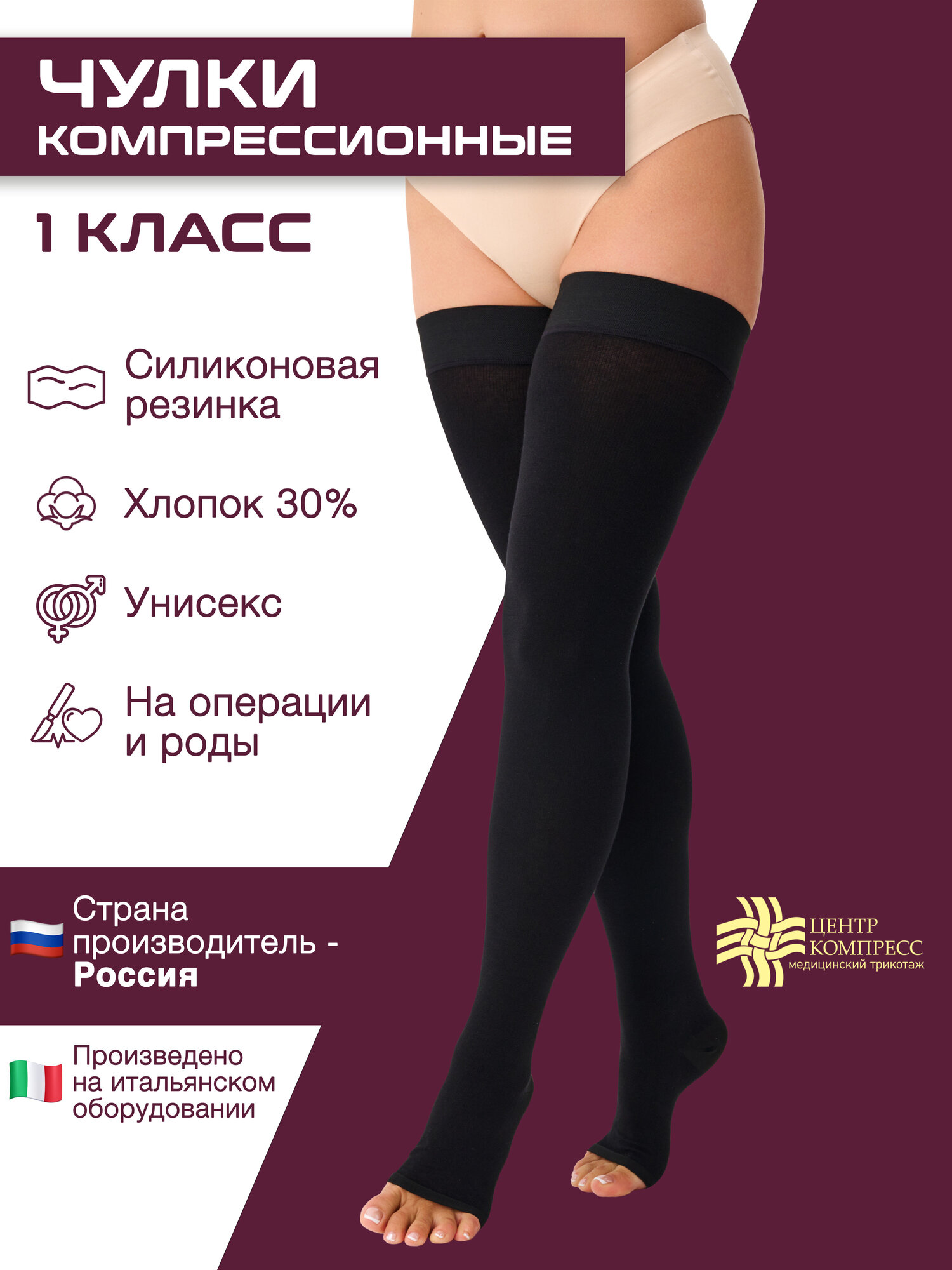СохранитьЧулки Центр Компресс компрессионные на силиконовой резинке, черные, 1 класс: размер 5 интересное: