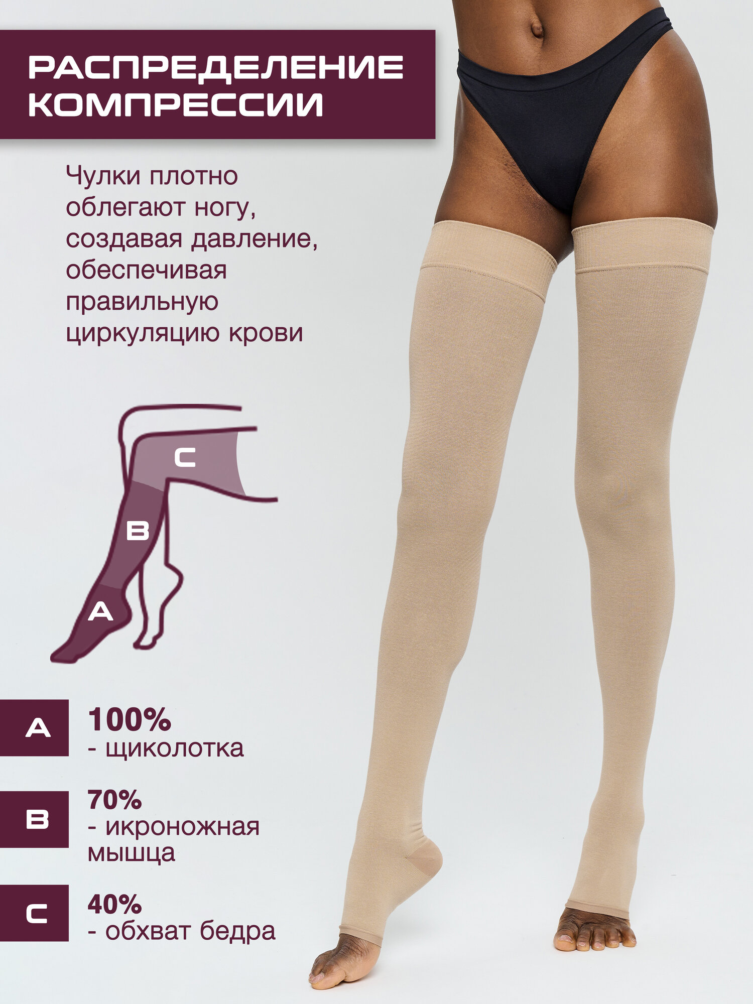 Чулки Центр Компресс компрессионные на вязанной резинке, кремовые, 1 класс: черные 2