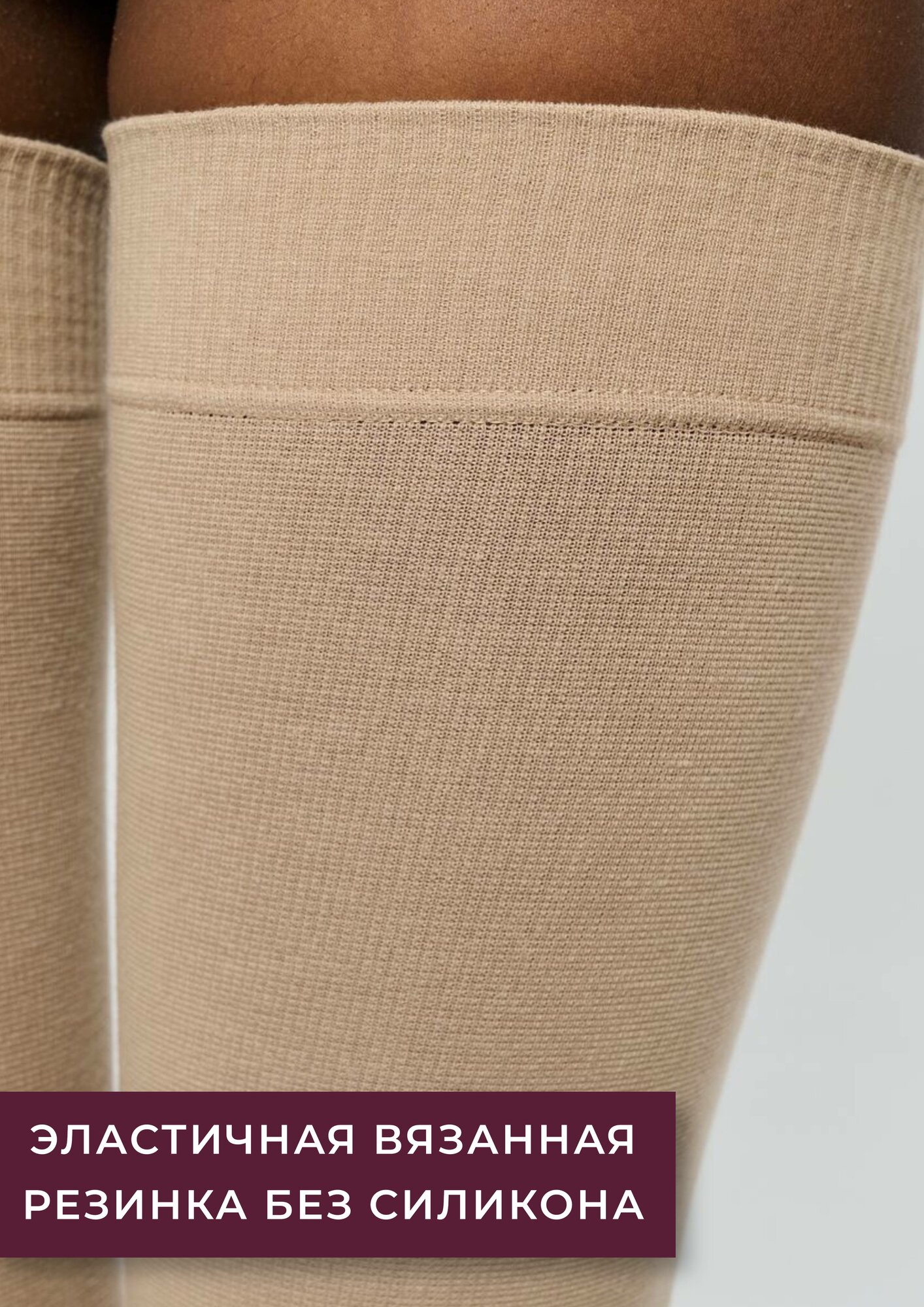 Чулки Центр Компресс компрессионные на вязанной резинке, кремовые, 1 класс: черные 4