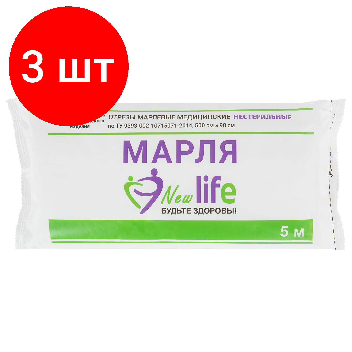 Купить Комплект 3 шт, Марля медицинская отбеленная NEW LIFE отрез 5 м, плотность 36 (±2) г/м2