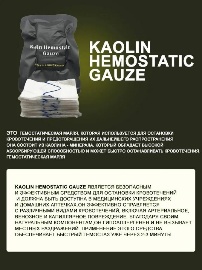 Каолиновый гемостатический Z-образный бинт (марля) быстрого действия 1 шт интересное: