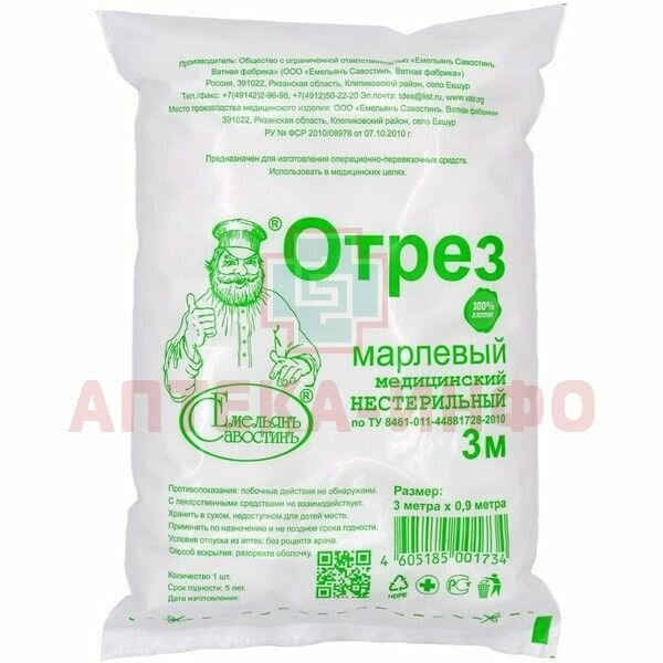 Отрез марлевый медицинский "Емельянъ Савостинъ", плотность 36г/кв.м, 0,9 х 3 м интересное: