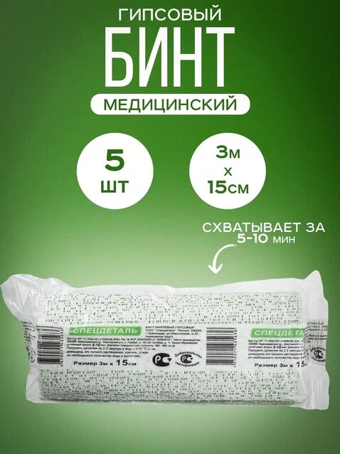 Бинт гипсовый медицинский 3м х 15см 5шт интересное: