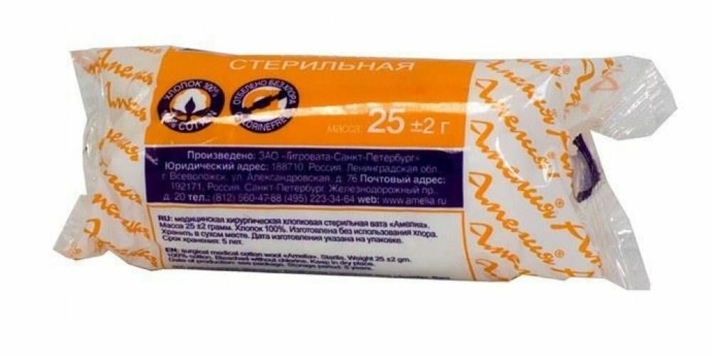 Вата хирургическая стерильная Амелия 25 г. интересное: