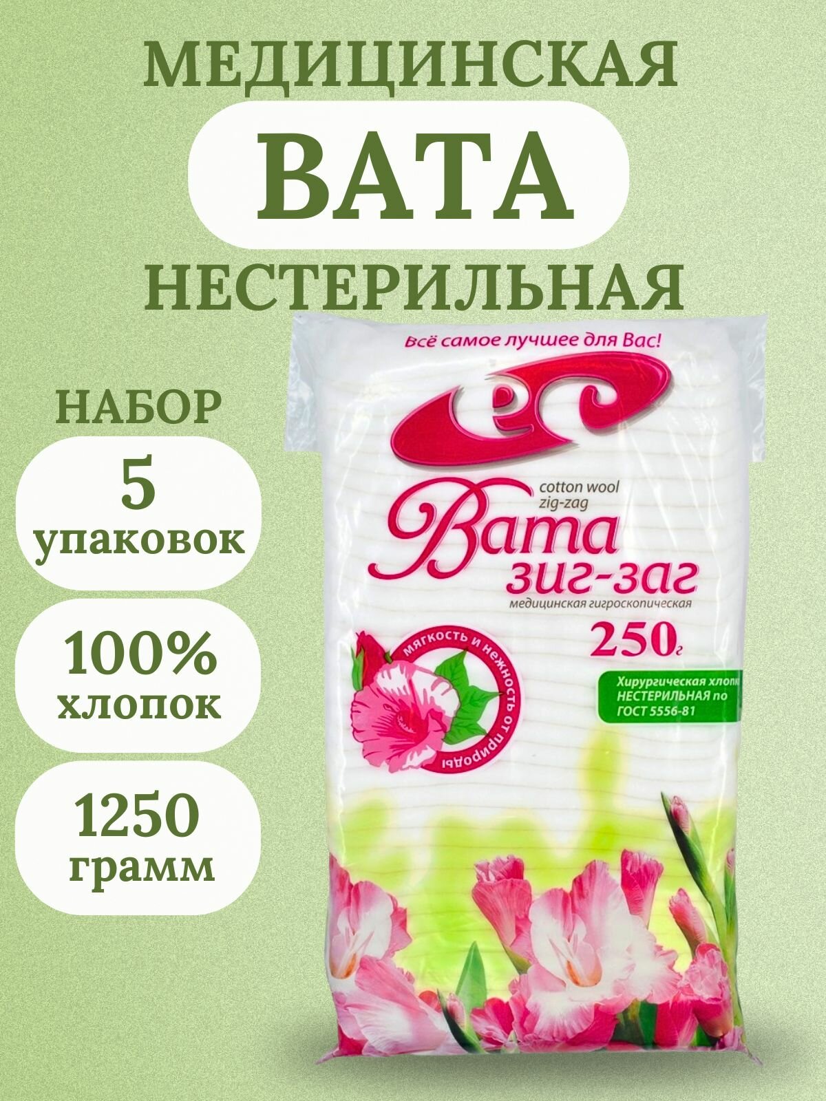 Набор Вата медицинская нестерильная "ЗИГ-ЗАГ", 5 уп х 200 г, Емельянъ Савостинъ